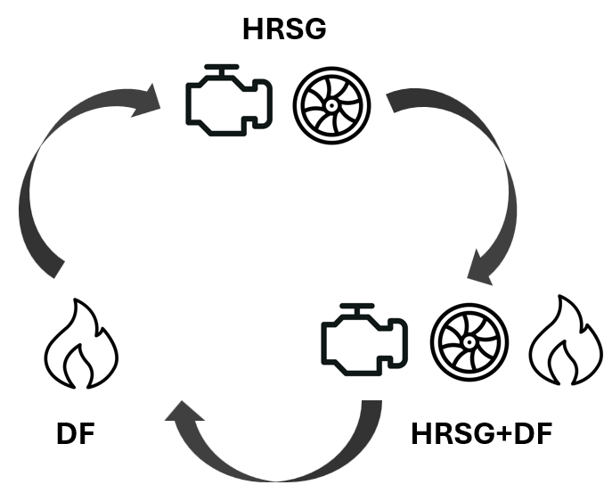 HRSG + DF (direct flame): recupero fumi + bruciatore attivo